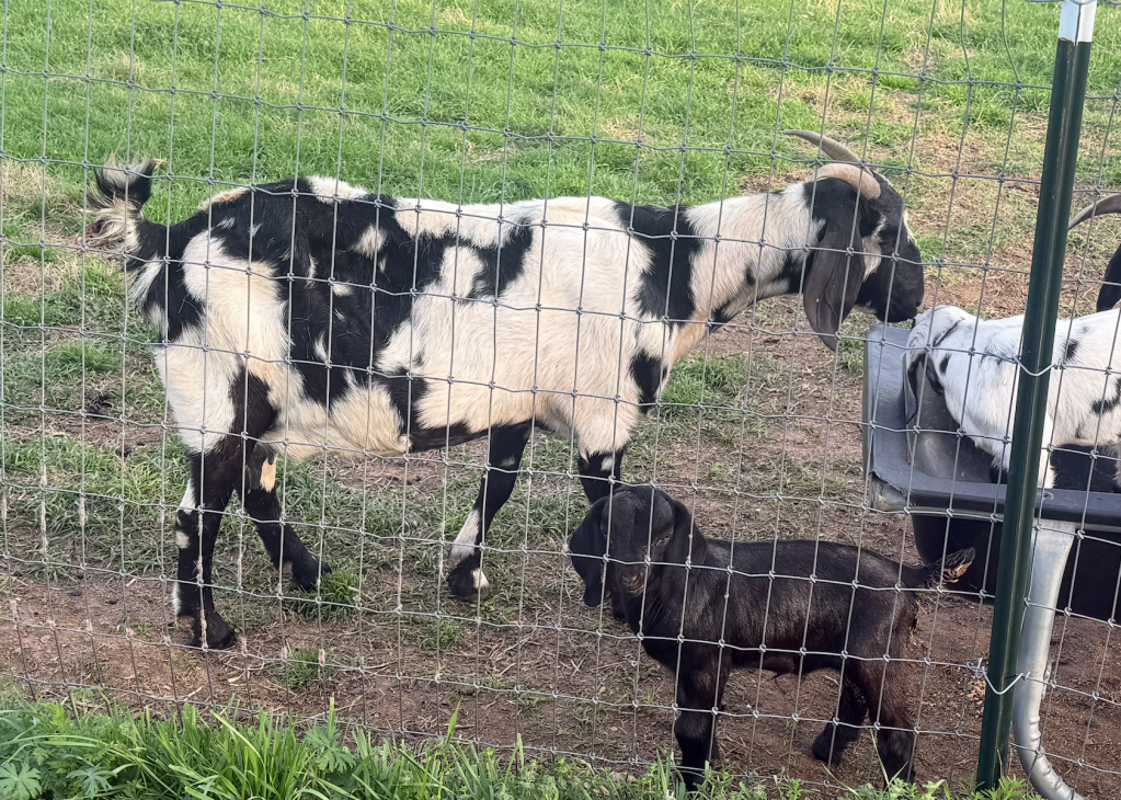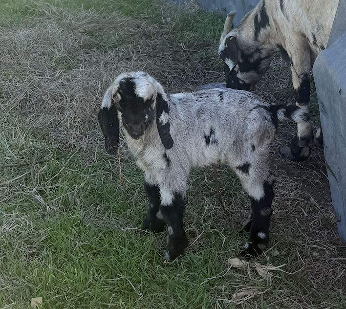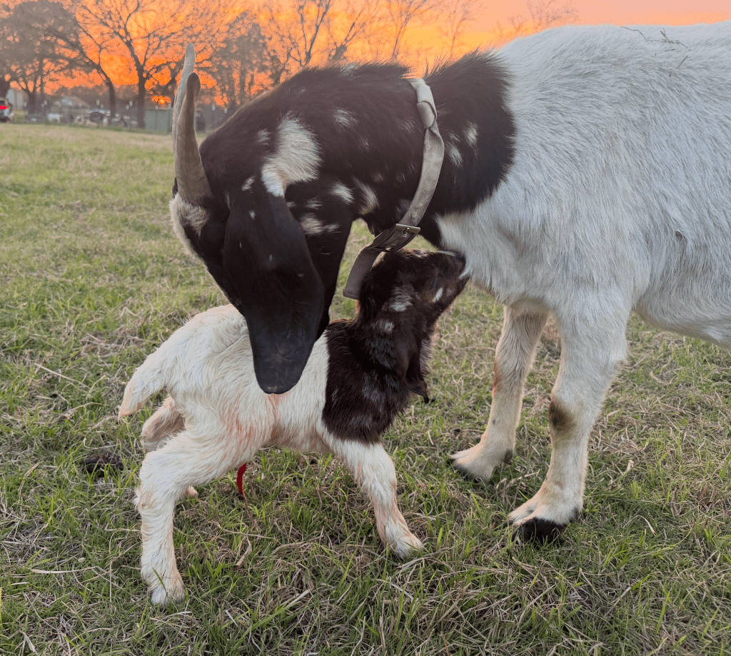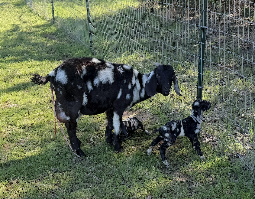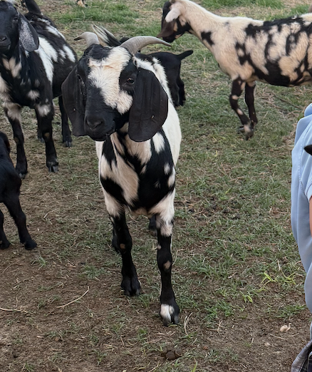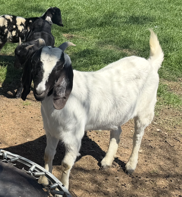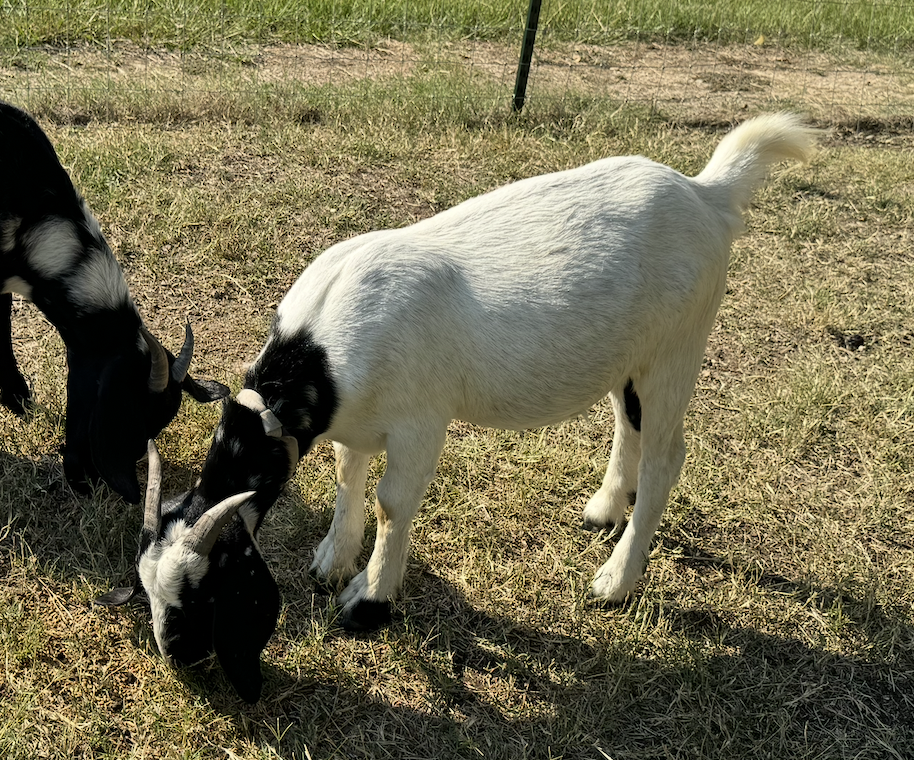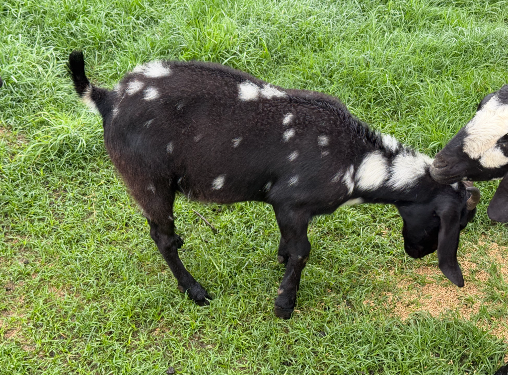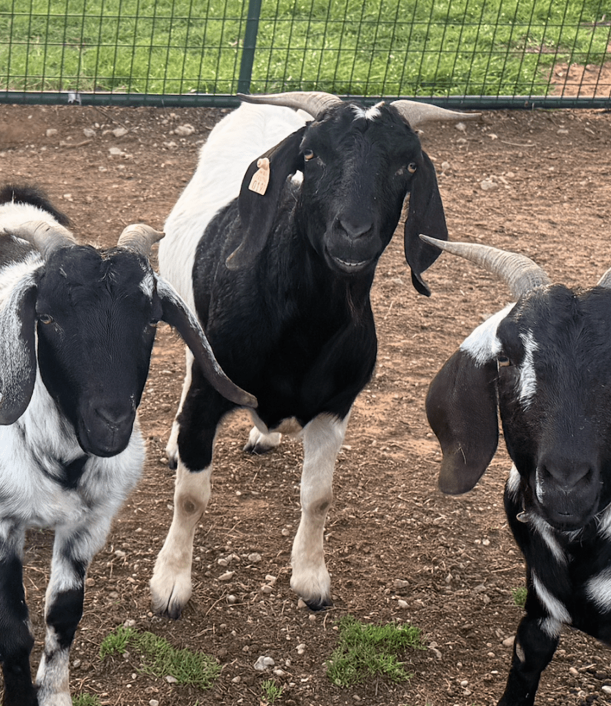 Our ABGA registered does range from fullbloods (100%) to 87.5% American-breds. As we continue to work to improve our herd genetics we expect to increase percentages of our breeding does over time. The lower percentage does were chosen specifically for their impressive colors and temperaments. Our breeding stock are rarely for sale but you are free to inquire if you are interested in a mature doe.