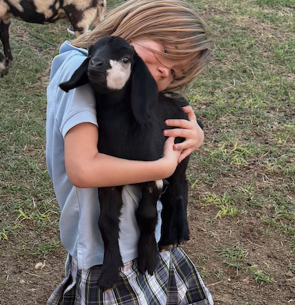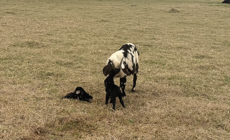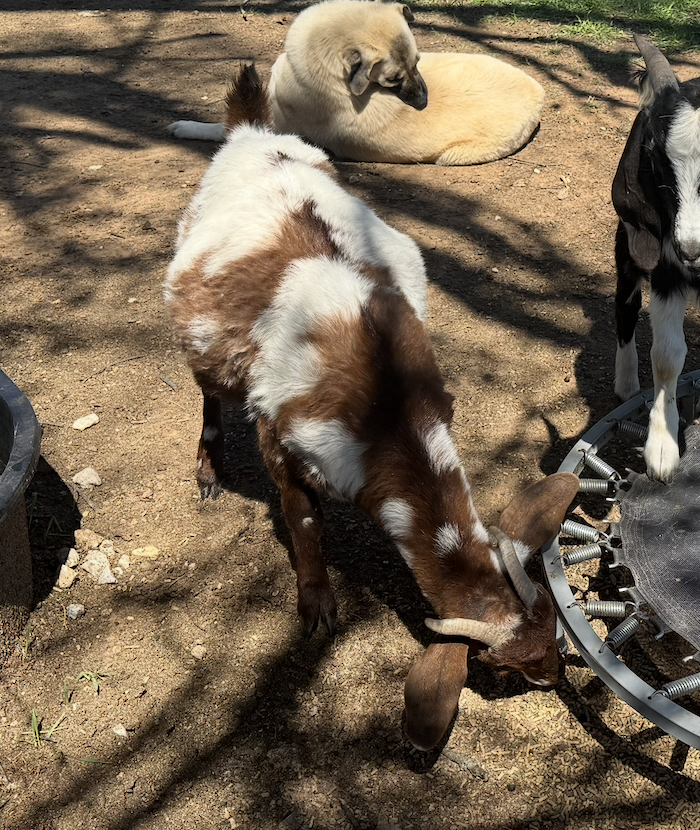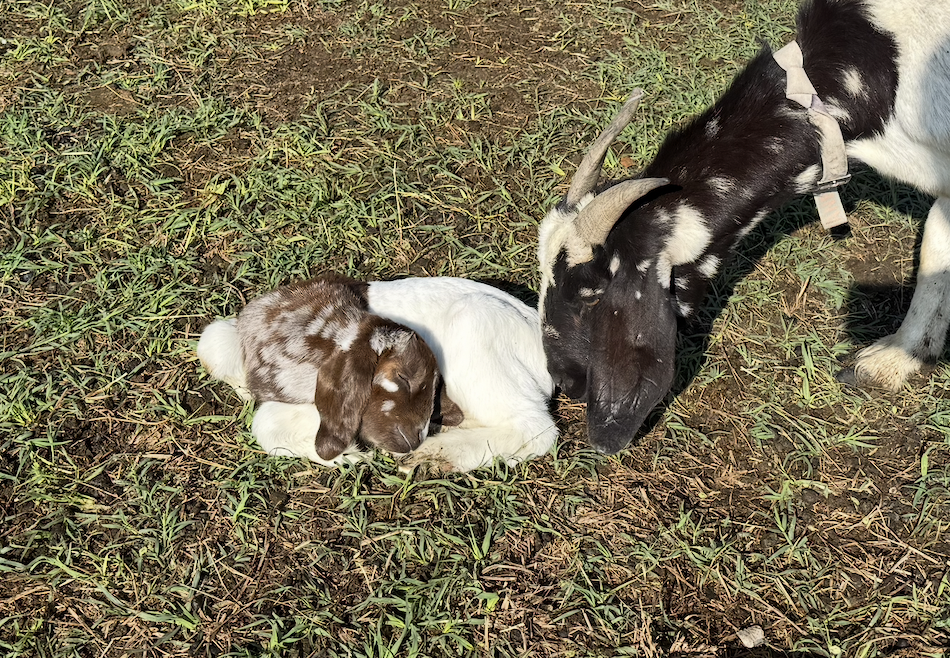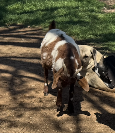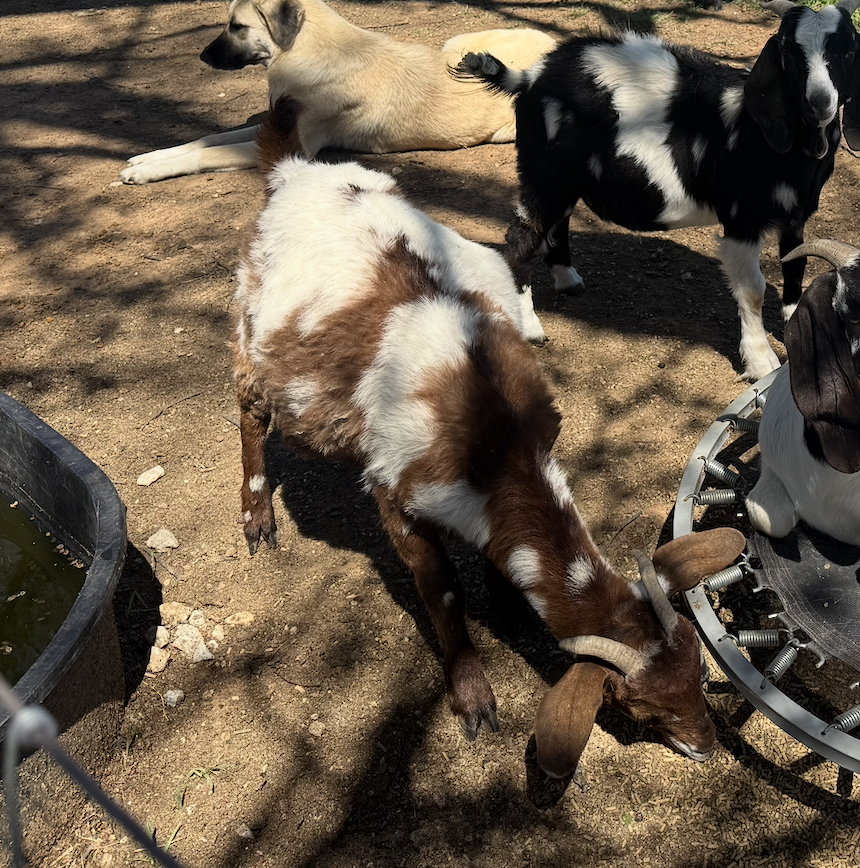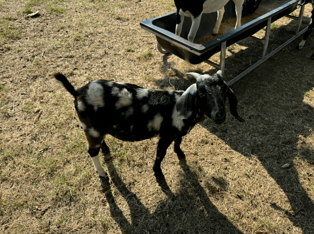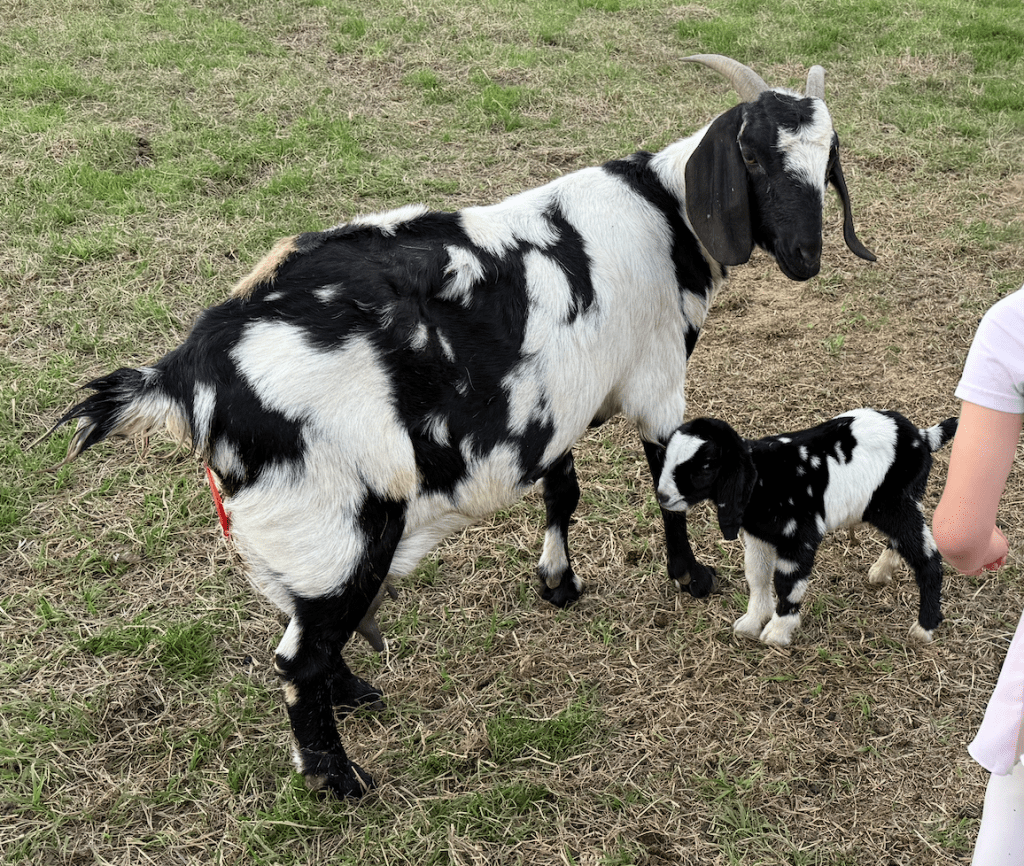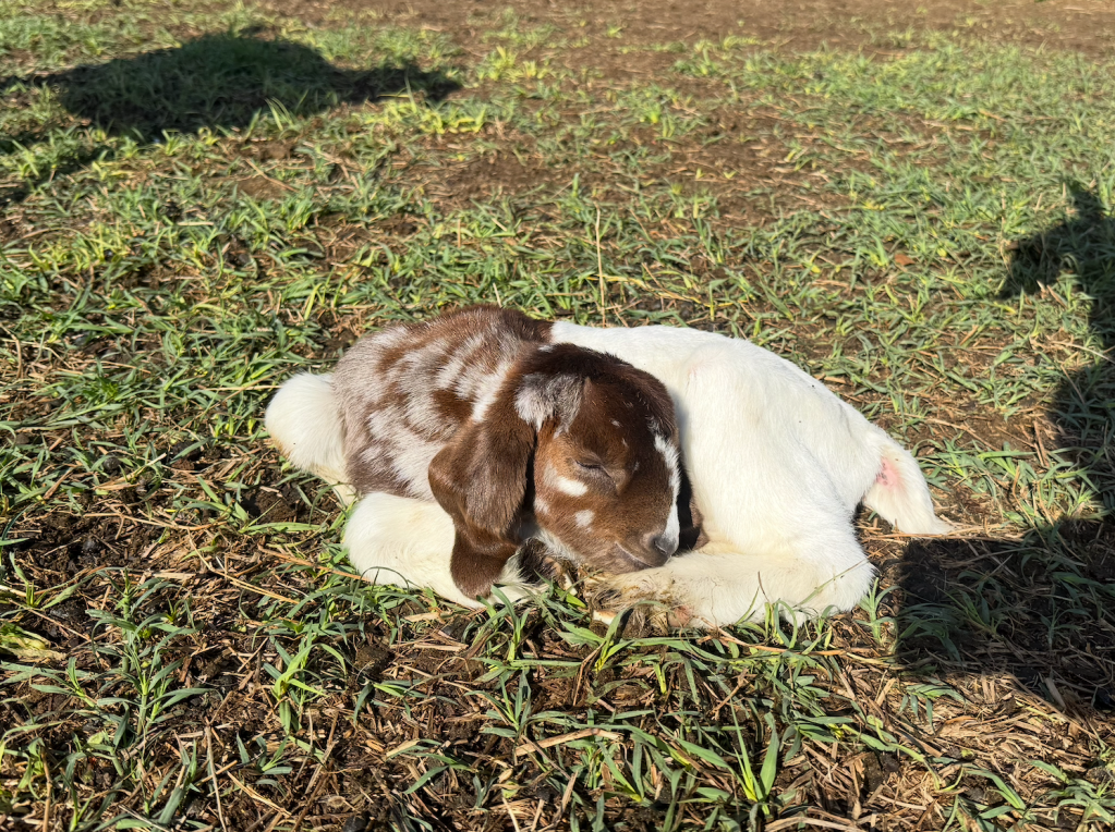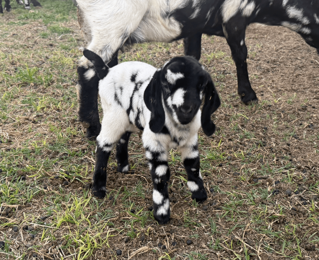 Our ABGA registered does range from fullbloods (100%) to 87.5% American-breds. As we continue to work to improve our herd genetics we expect to increase percentages of our breeding does over time. The lower percentage does were chosen specifically for their impressive colors and temperaments. Our breeding stock are rarely for sale but you are free to inquire if you are interested in a mature doe.